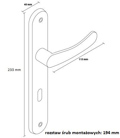 - Klamka drzwiowa na długim szyldzie wykonana ze stali oraz aluminium, malowana proszkowo. Klamka nie posiada mechanizmu wspomagającego.