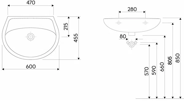 Koło umywalka bez otworu z przelewem Idol 60x45cm M11060000