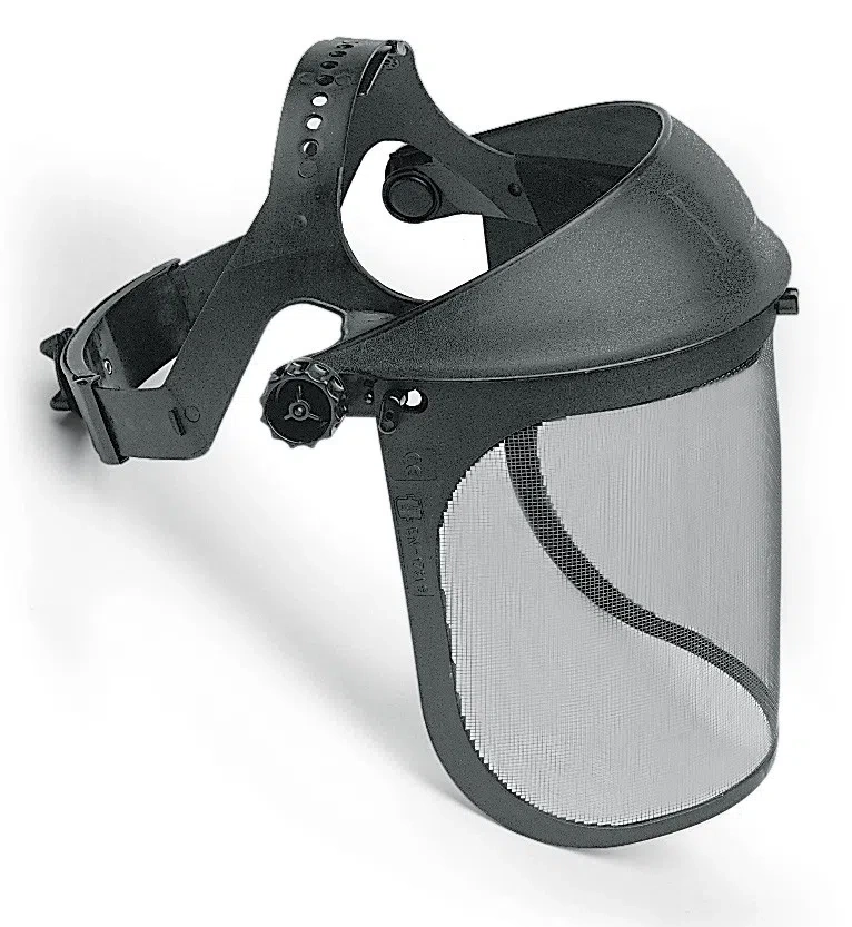 - Struktura z PVC, wymienna, regulowana osłona twarzy z metalowej siatki, odporna na zaparowanie