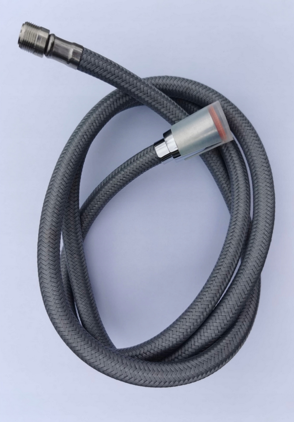 Wysokiej jakości wąż elastyczny przeznaczony do baterii kuchennych z wyciąganą wylewką. Wykonany z trwałego materiału wewnętrznego, zabezpieczony dodatkowo nylonowym oplotem, który zapewnia zwiększoną odporność na uszkodzenia mechaniczne, zginanie i przetarcia. Dzięki swojej elastyczności i gładkiej powierzchni wąż zapewnia wygodę użytkowania oraz długą żywotność.
