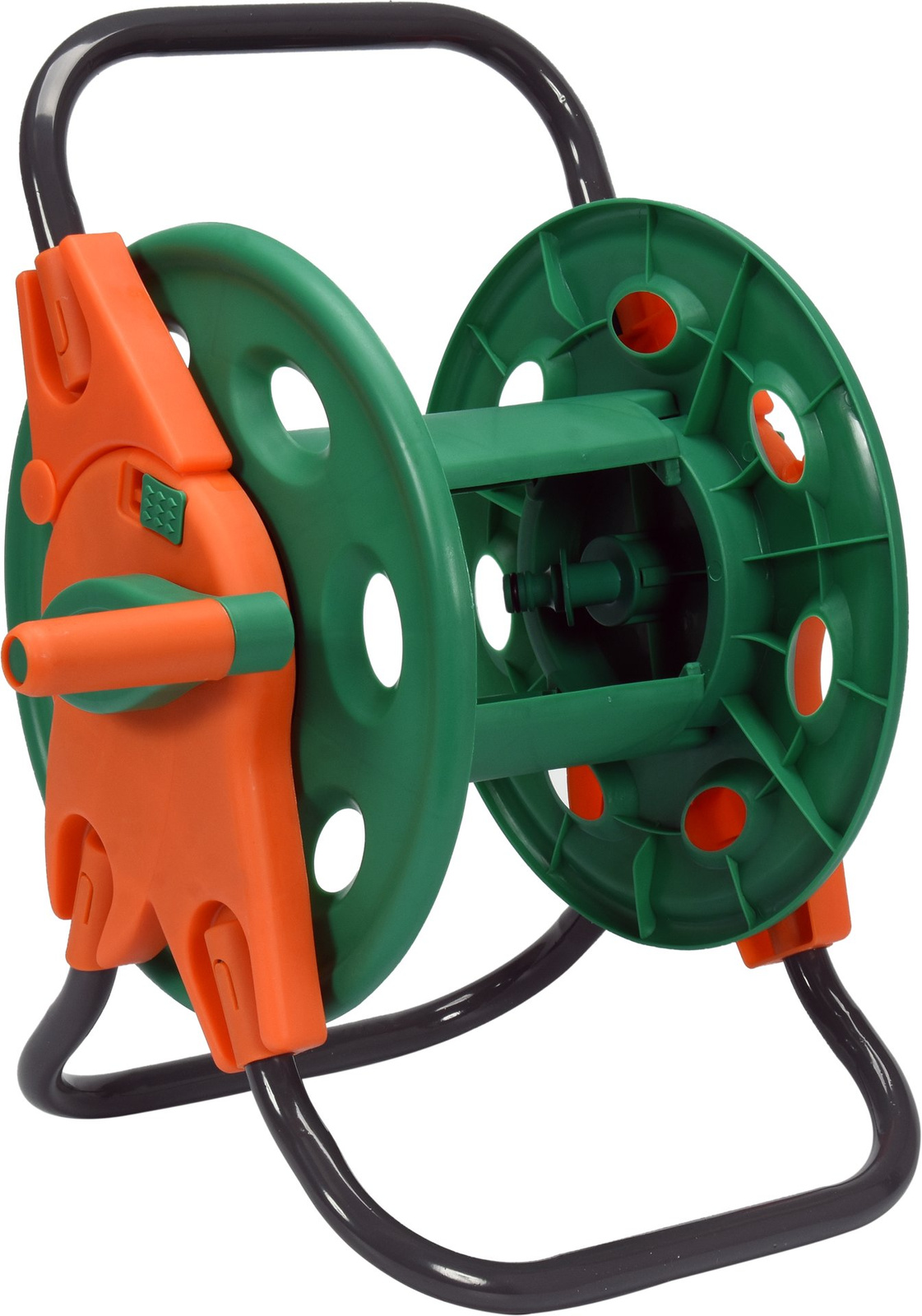 - Stojak wykonany z tworzywa sztucznego. Stabilność konstrukcji zapewniają nogi ze stalowej rury. Dostosowany do węży: 1/2" o długości 45m oraz 5/8" o długości 30m. Centralne gniazdo podłączeniowe z szybkozłączem.