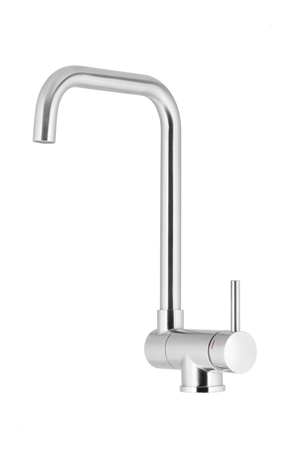 Theta to jednouchwytowa, stojąca bateria kuchenna o unikalnym kształcie. Jest to rozwiązanie dedykowane do zlewów usytuowanych pod oknem, ponieważ bateria ma całkowicie składaną wylewkę – zakres ruchów wynosi 90°, a po złożeniu jej wysokość to zaledwie 6,6 cm. Dla zwiększenia wygody wylewka jest obrotowa, a rączka uchwytu została wydłużona, aby zapewnić ergonomię użytkowania.