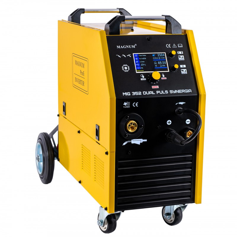 - Magnum MIG 352 Dual Pulse to wydajna spawarka inwertorowa 400 V. Posiada funkcję pulsu i podwójnego pulsu, synergiczne programy, 4-rolkowy podajnik oraz czytelny ekran LCD. Umożliwia precyzyjne spawanie stali, nierdzewki i aluminium.