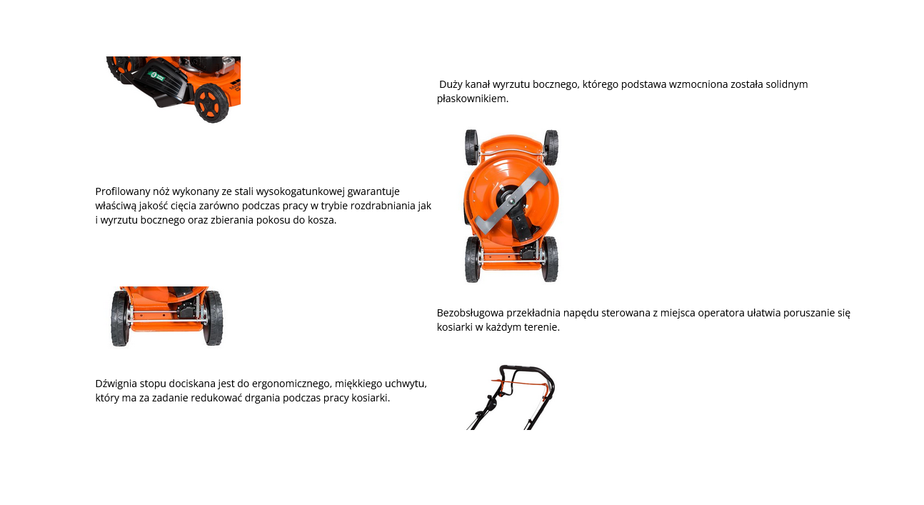 - Ergonomiczna dźwignia hamulca silnika i napędu wykonane z tworzywa sztucznego zapewniają niezmiennie pewny i wygodny chwyt.