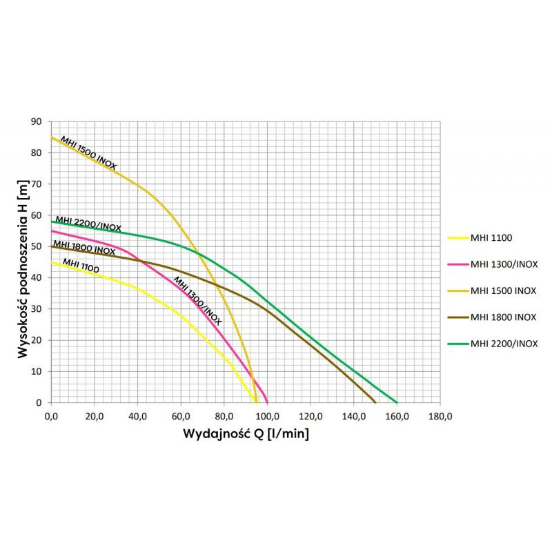 Wielostopniowa pompa MHI 1300 Inox z osprzętem ze względu na uzyskiwane wysokie parametry hydrauliczne przeznaczona jest do zaopatrywania w wodę pod ciśnieniem budynków mieszkalnych, domów jedno i wielorodzinnych, małych gospodarstw rolnych oraz podnoszenia ciśnienia w instalacji. Z powodzeniem mogą być również stosowane w zakładach przemysłowych systemach nawodnienia i procesach technologicznych. W połączeniu ze zbiornikiem przeponowym (optymalnie 50 do 300 litrów) tworzy kompletny zestaw hydroforowy. MH 1300 Inox jest pompą samozasysającą, w przypadku pierwszego uruchomienia wystarczy zalać wodą korpus a pompa sama wytworzy podciśnienie ułatwiające zassanie wody pod warunkiem, że lustro wody w źródle znajduje się na głębokości nie niższej niż 8m od miejsca posadowienia pompy.