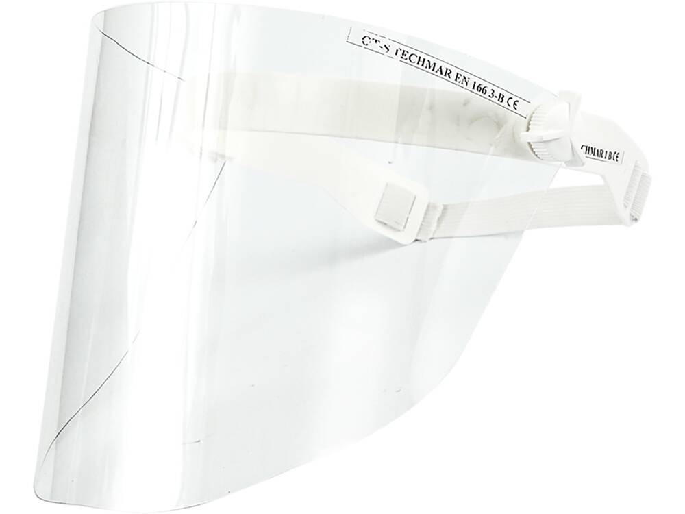 • Lekka i wytrzymała osłona twarzy wykonana z przezroczystego poliwęglanu, chroniąca przed odpryskami cieczy i ciał stałych. Posiada regulowane nagłowie i spełnia normę EN 166, klasa B, co gwarantuje wysoką odporność na uderzenia.