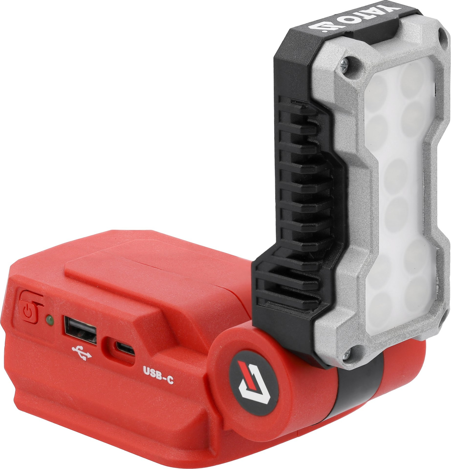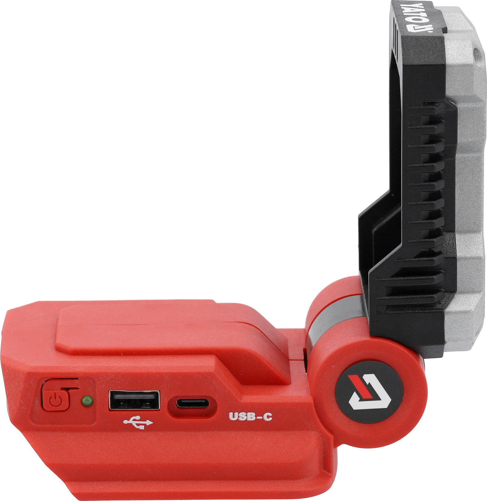 • funkcja powerbank z dwoma portami: port USB typu C (2 A), port USB (1 A) oraz port do ładowania sieciowego baterii YATO