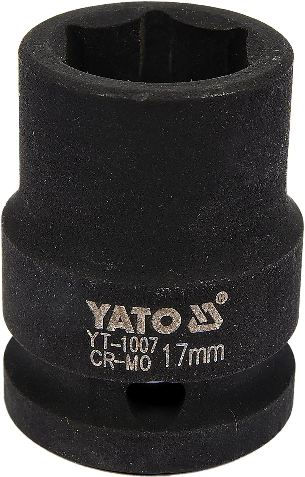 Wytrzymała nasadka udarowa Yato YT-1007 o rozmiarze 17 mm i napędzie 1/2" przeznaczona do pracy z kluczami udarowymi pneumatycznymi i elektrycznymi. Wykonana ze stali chromowo-molibdenowej (CrMo), odporna na wysokie obciążenia i intensywne użytkowanie.
