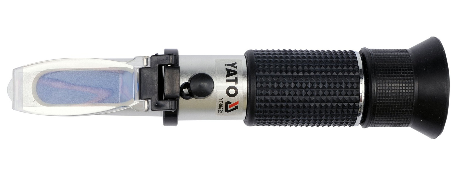 Refraktometr jest urządzeniem pozwalającym określić właściwości fizyczne cieczy za pomocą pomiaru współczynnika załamania światła na granicy ośrodków. Dzięki temu można określić: - poziom naładowania akumulatora - temperaturę zamarzania płynów opartych na glikolu propylenowym lub alkoholu etylowym - temperaturę zamarzania płynu do spryskiwaczy. Profesjonalny refraktometr do pomiarów płynów eksploatacyjnych samochodów osobowych, ciężarowych i autobusów. Przeznaczony jest do określania temperatury zamarzania płynu do spryskiwaczy, płynu chłodzącego glikolu propylenowego i glikolu etylowego. Podaje również zakres gęstości elektrolitu. Zestaw zawiera pipetkę do pobierania próbek oraz szmatkę do czyszczenia. Wszystko zapakowane w solidne plastikowe pudełko.