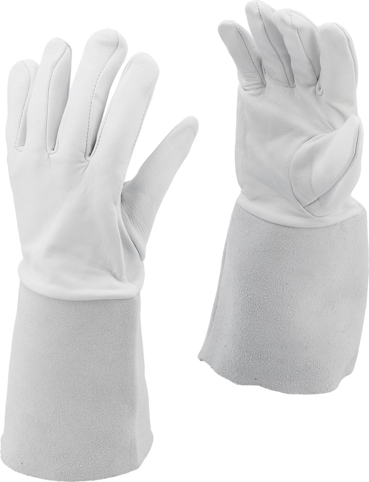- Rękawice spawalnicze typu B. Wykonane z dwóch rodzajów skóry naturalnej. Miękka skóra licowa w połączeniu z odpowiednią techniką łączenia materiałów zapewnia zdecydowanie większą swobodę i zręczność w porównaniu do rękawic typu A. Do spawania metodą TIG.