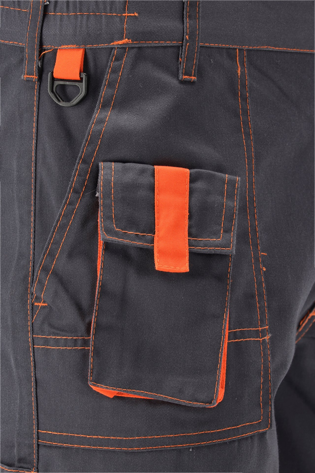 Spodnie robocze krótkie z siedmioma kieszeniami, w tym cztery z zapięciem na rzep. Materiał główny to mieszanka bawełny z poliestrem w odpowiednich proporcjach. Takie rozwiązanie pozwala wykorzystać mocne strony obydwu materiałów, m.in. zwiększoną odporność na rozdarcie oraz dobrą cyrkulację powietrza.