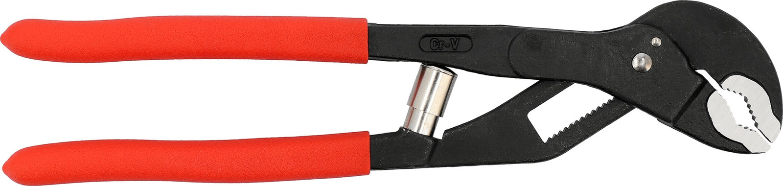 Wytrzymałe samonastawne szczypce hydrauliczne o regulowanym zakresie pracy, przeznaczone do chwytania, przytrzymywania i odkręcania elementów instalacji o różnych średnicach, z możliwością efektywnej pracy jedną ręką. Wzmocniona, kuta konstrukcja ze stali chromowo-wanadowej (CrV) zapewnia wysoką odporność na obciążenia i długą żywotność narzędzia, a czerniona powierzchnia chroni przed korozją i ułatwia konserwację. Precyzyjny mechanizm samonastawny umożliwia natychmiastowe dopasowanie szczęk do średnicy chwytanego elementu, bez potrzeby czasochłonnej regulacji. Rękojeści gwarantują komfort oraz pewny chwyt nawet przy dużej sile nacisku.