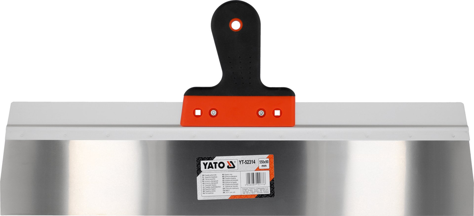 - Szpachla fasadowa 550 mm Yato z elastycznym ostrzem ze stali nierdzewnej. Idealna do wyrównywania gładzi i tynków. Ergonomiczny uchwyt dwukomponentowy zapewnia komfort i pewny chwyt.