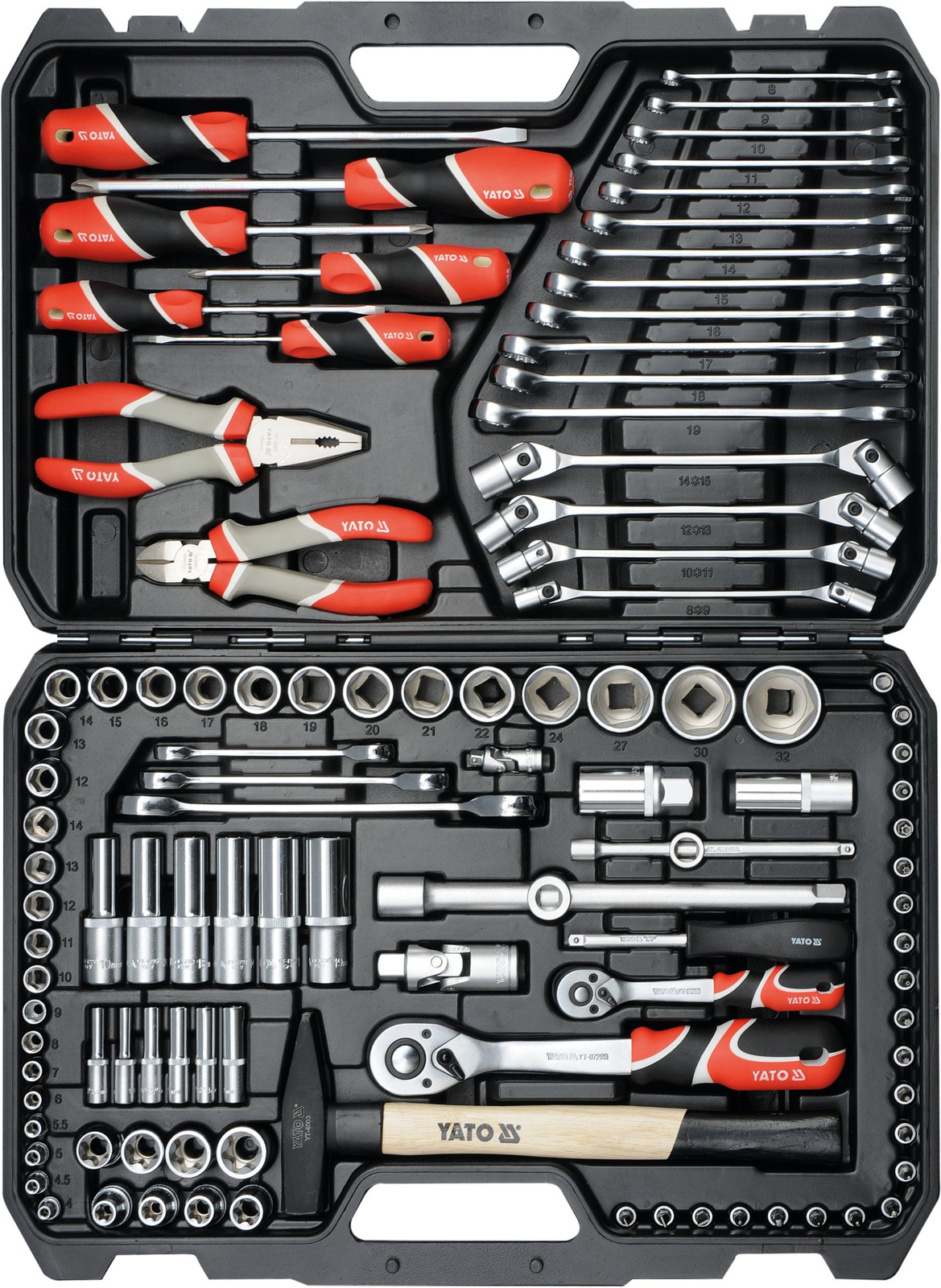 - Yato YT-38891 to solidny 109-elementowy zestaw narzędzi w praktycznej walizce. Zawiera klucze, grzechotki, bity, wkrętaki i wiele innych akcesoriów wykonanych z trwałej stali CrV. Idealny do warsztatu, garażu i domowych napraw.