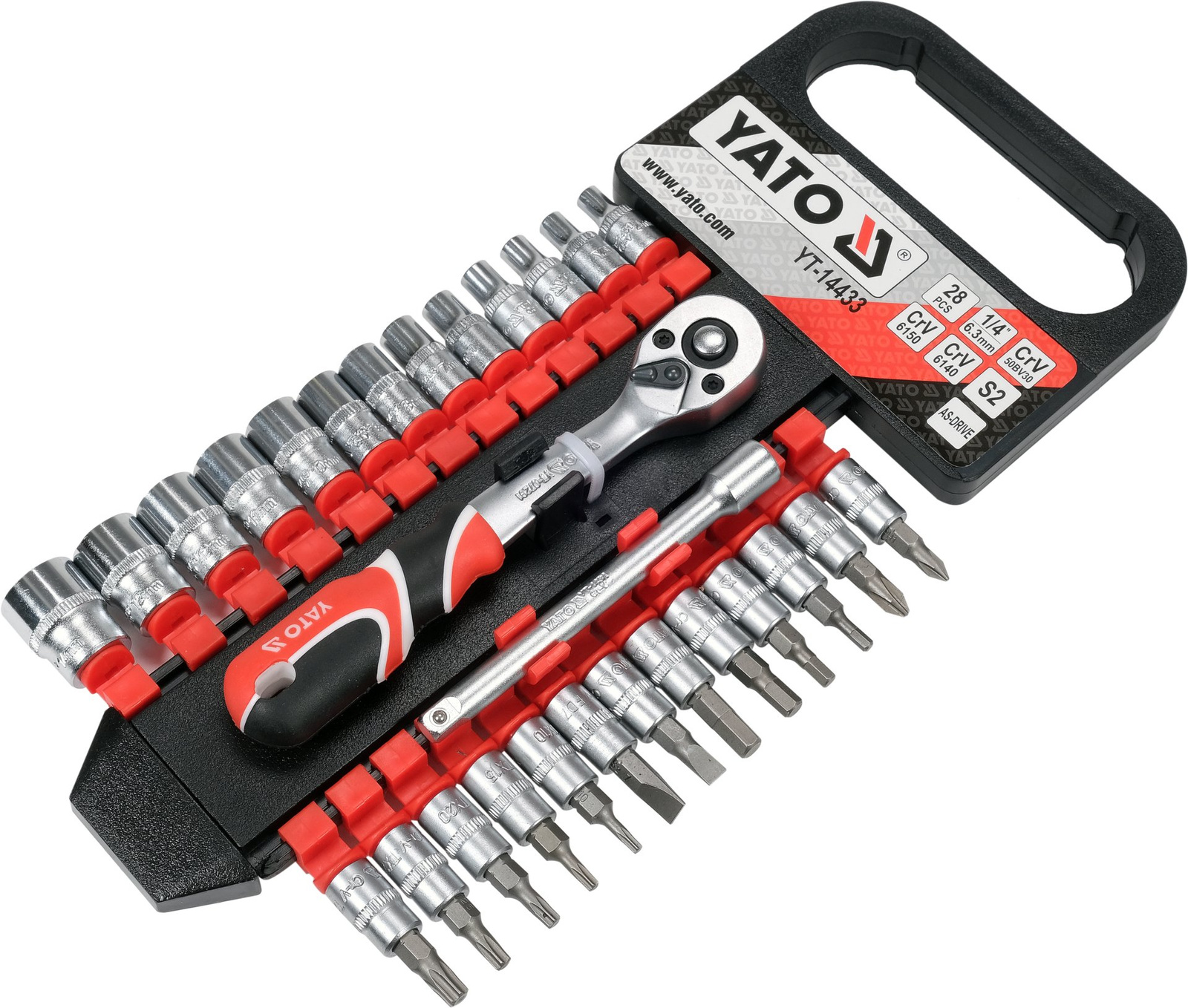 Yato zestaw nasadek z akcesoriami 1/4" 28-elementowy YT-14433