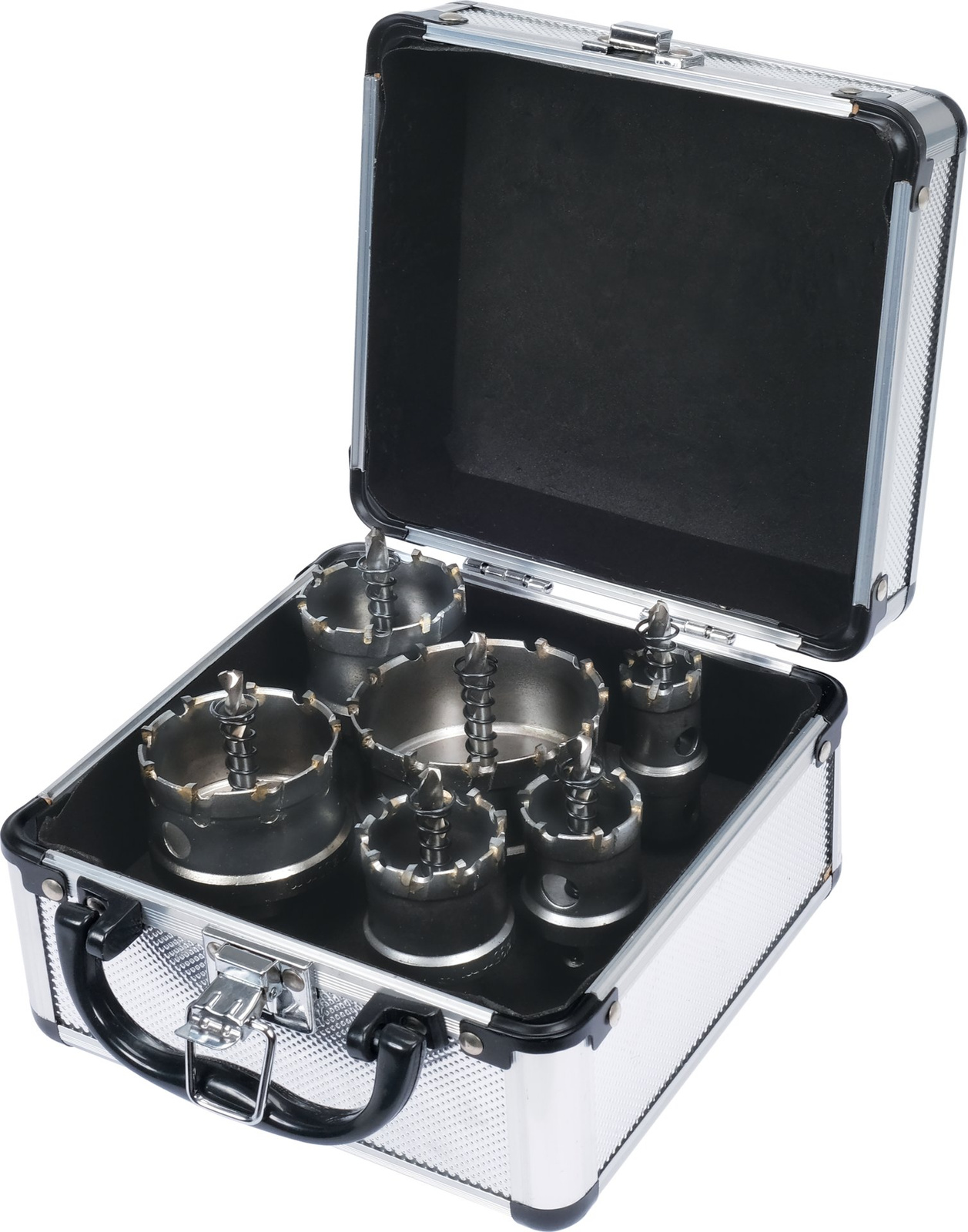 - Zestaw otwornic Yato YT-44077 (6 sztuk) z węglikiem spiekanym TCT do wiercenia w metalu, stali nierdzewnej i aluminium. Średnice od 22 do 65mm, głębokość wiercenia do 25mm. Idealny do zastosowań warsztatowych i przemysłowych. W zestawie z walizką.