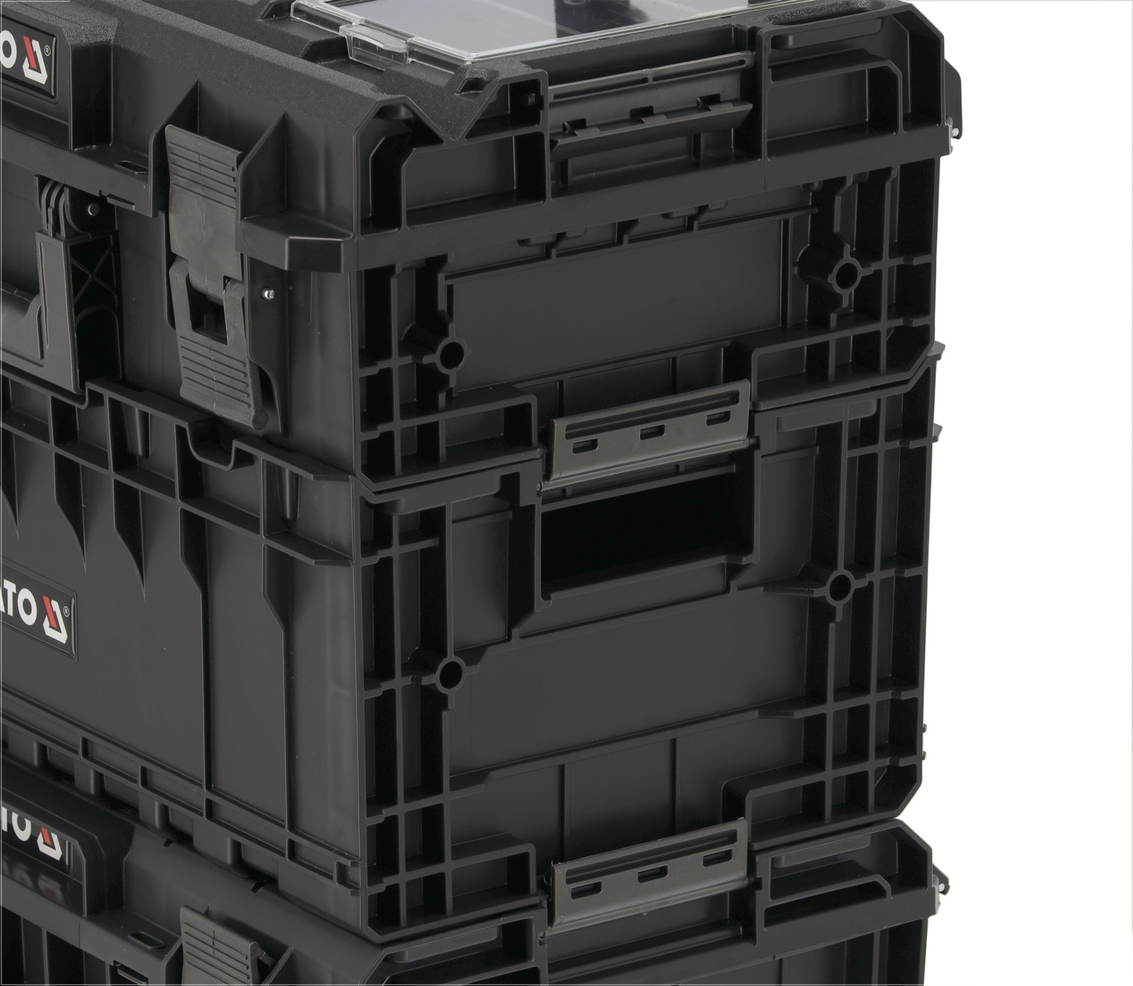 - możliwość łączenia z innymi skrzyniami i organizerami systemowymi dzięki zapięciom bocznym