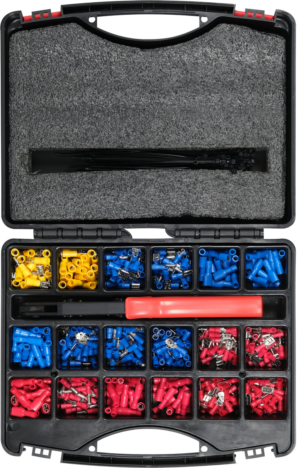 - Zestaw złączy elektrycznych Yato YT-068920 zawiera szeroki wybór konektorów oraz zaciskarkę do szybkiego i pewnego wykonywania połączeń. Idealny do prac instalacyjnych, serwisowych i warsztatowych.